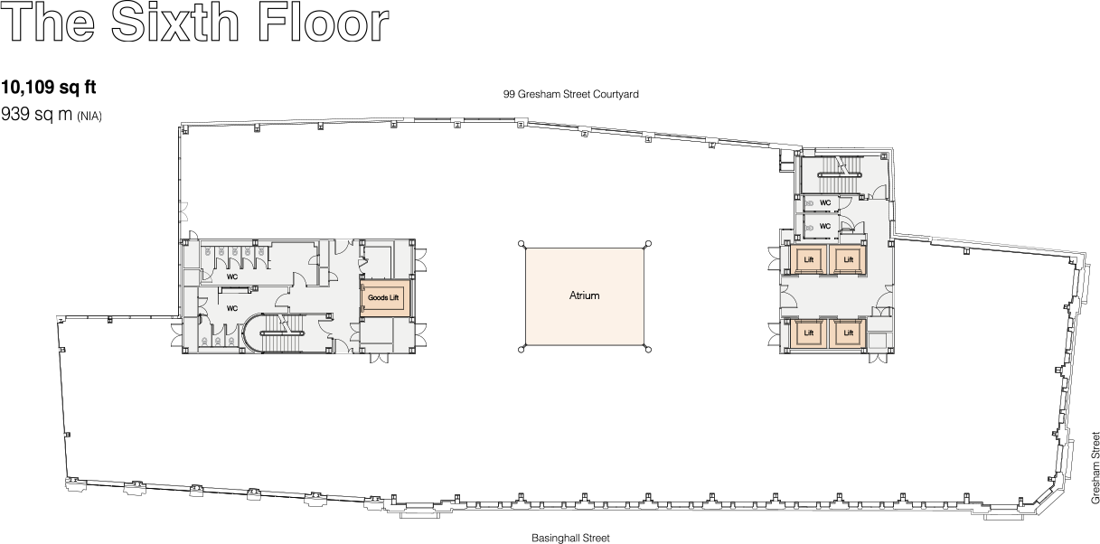 1 x 2,000 kg (26person) goods lift accessed from Basinghall Street